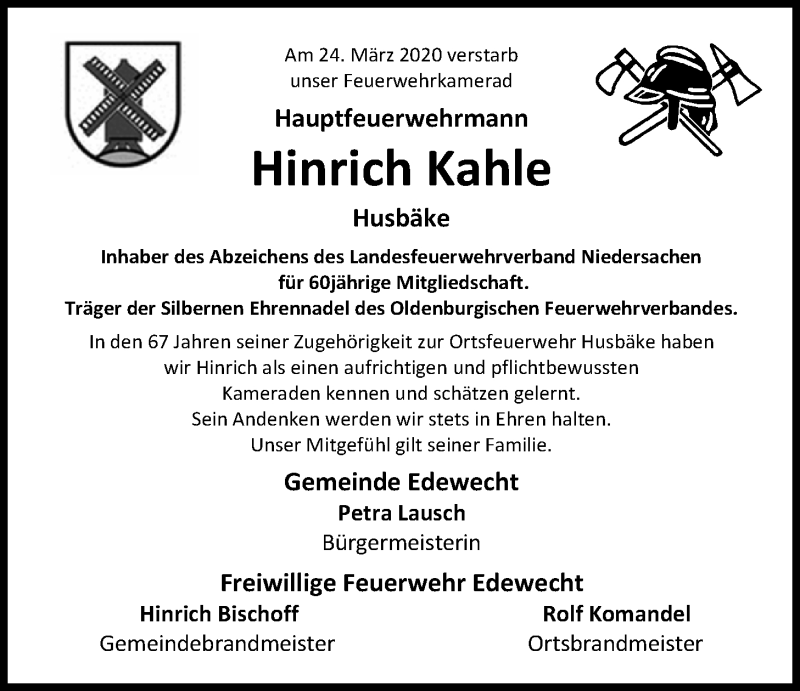 Hier finden Sie alle Traueranzeigen aus der Zeitung, die bisher für Hinrich Kahle erschienen sind. Weitere Traueranzeigen, die in der Zeitung erscheinen, werden hier ebenfalls aufgelistet