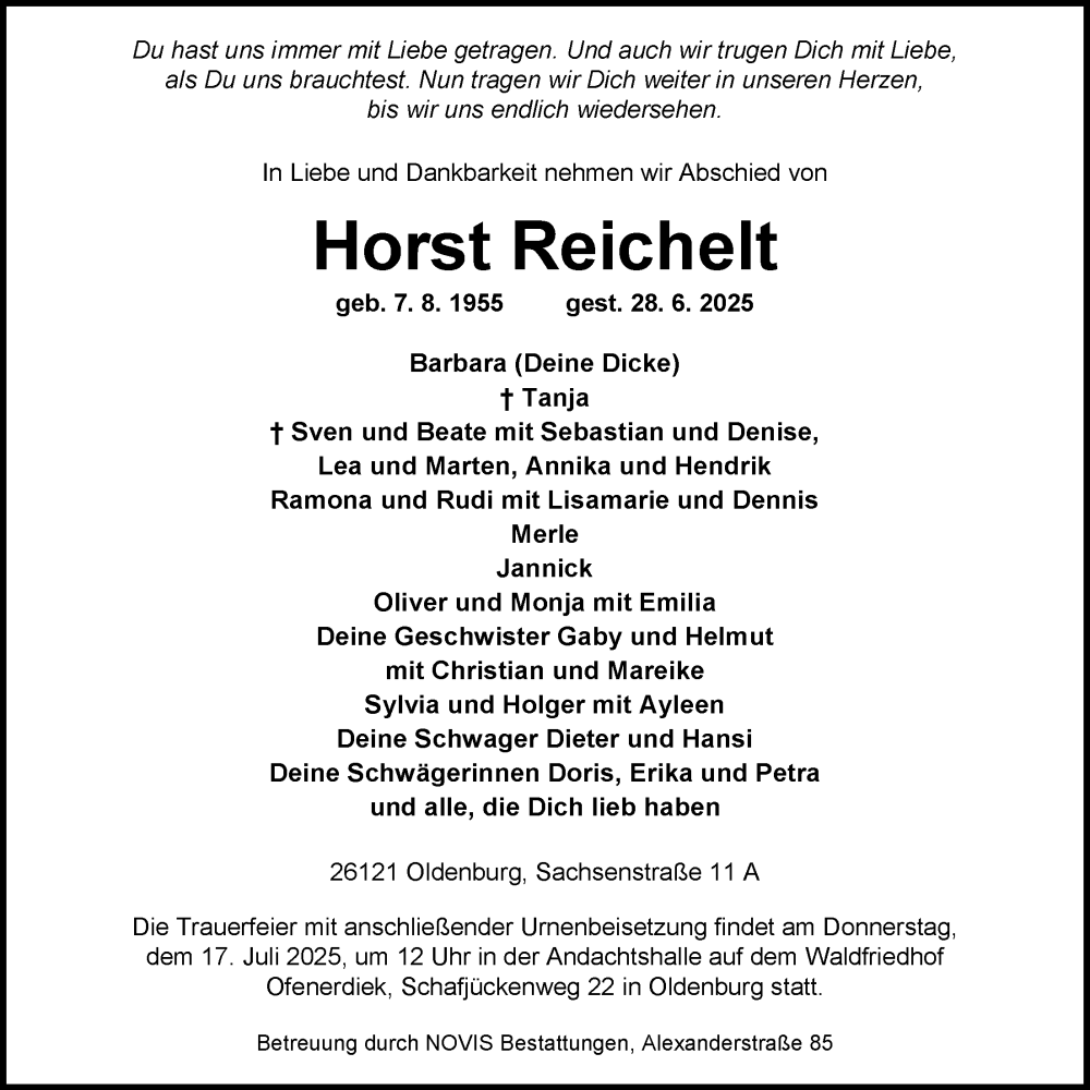 Hier finden Sie alle Traueranzeigen aus der Zeitung, die bisher für Horst Reichelt erschienen sind. Weitere Traueranzeigen, die in der Zeitung erscheinen, werden hier ebenfalls aufgelistet