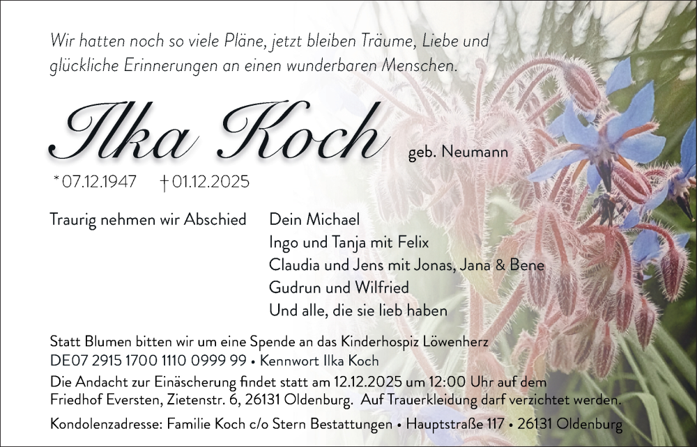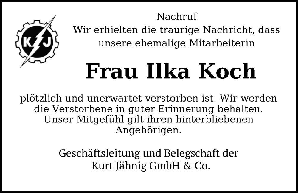 Hier finden Sie alle Traueranzeigen aus der Zeitung, die bisher für Ilka Koch erschienen sind. Weitere Traueranzeigen, die in der Zeitung erscheinen, werden hier ebenfalls aufgelistet