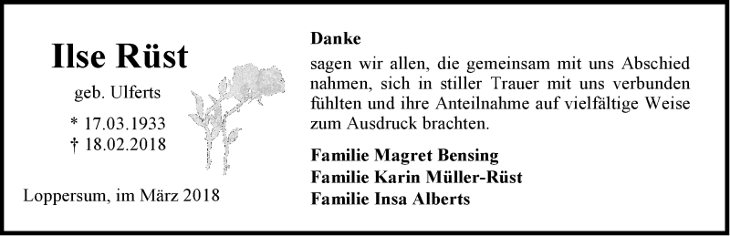 Hier finden Sie alle Traueranzeigen aus der Zeitung, die bisher für Ilse Rüst erschienen sind. Weitere Traueranzeigen, die in der Zeitung erscheinen, werden hier ebenfalls aufgelistet