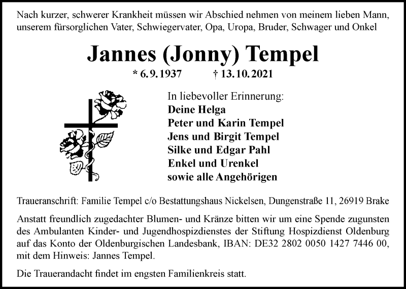 Hier finden Sie alle Traueranzeigen aus der Zeitung, die bisher für Jannes Tempel erschienen sind. Weitere Traueranzeigen, die in der Zeitung erscheinen, werden hier ebenfalls aufgelistet