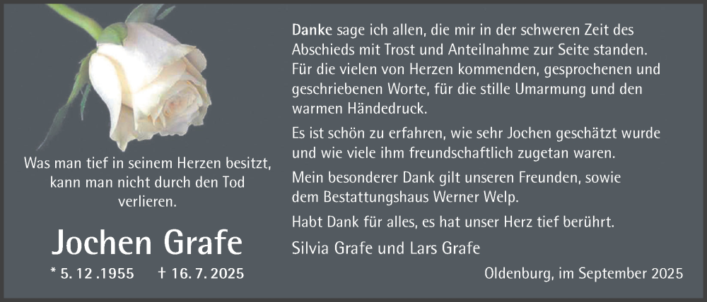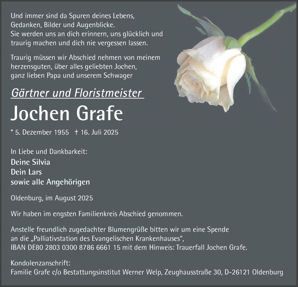 Hier finden Sie alle Traueranzeigen aus der Zeitung, die bisher für Jochen Grafe erschienen sind. Weitere Traueranzeigen, die in der Zeitung erscheinen, werden hier ebenfalls aufgelistet
