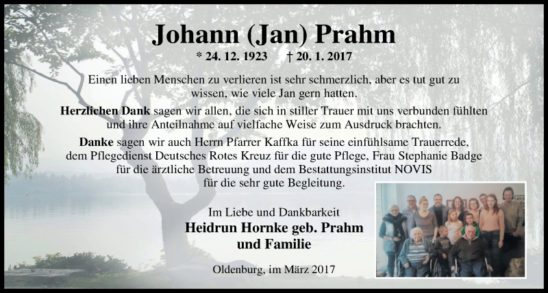Hier finden Sie alle Traueranzeigen aus der Zeitung, die bisher für Johann Prahm erschienen sind. Weitere Traueranzeigen, die in der Zeitung erscheinen, werden hier ebenfalls aufgelistet
