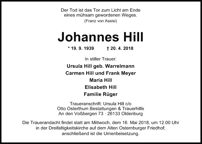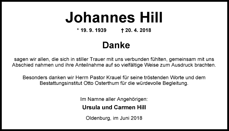 Hier finden Sie alle Traueranzeigen aus der Zeitung, die bisher für Johannes Hill erschienen sind. Weitere Traueranzeigen, die in der Zeitung erscheinen, werden hier ebenfalls aufgelistet