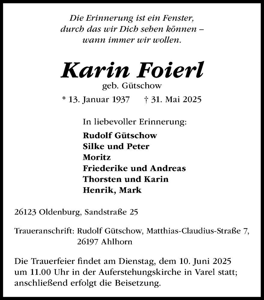 Hier finden Sie alle Traueranzeigen aus der Zeitung, die bisher für Karin Foierl erschienen sind. Weitere Traueranzeigen, die in der Zeitung erscheinen, werden hier ebenfalls aufgelistet