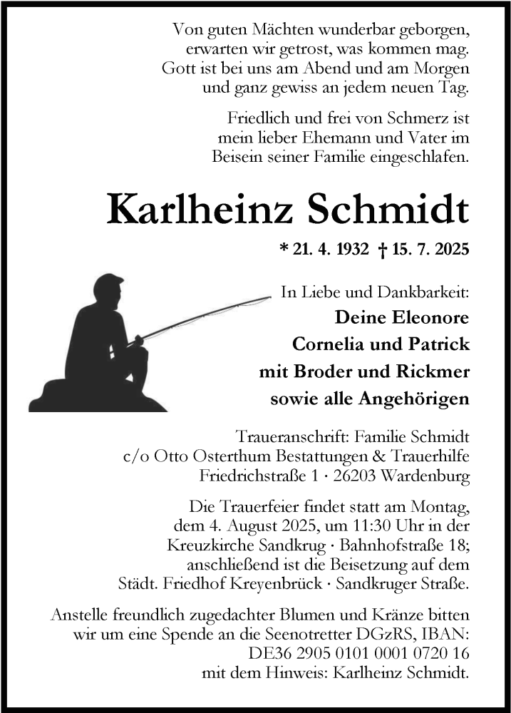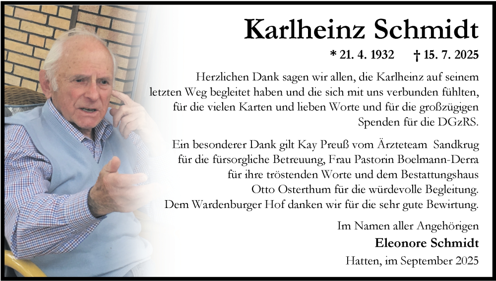 Hier finden Sie alle Traueranzeigen aus der Zeitung, die bisher für Karlheinz Schmidt erschienen sind. Weitere Traueranzeigen, die in der Zeitung erscheinen, werden hier ebenfalls aufgelistet