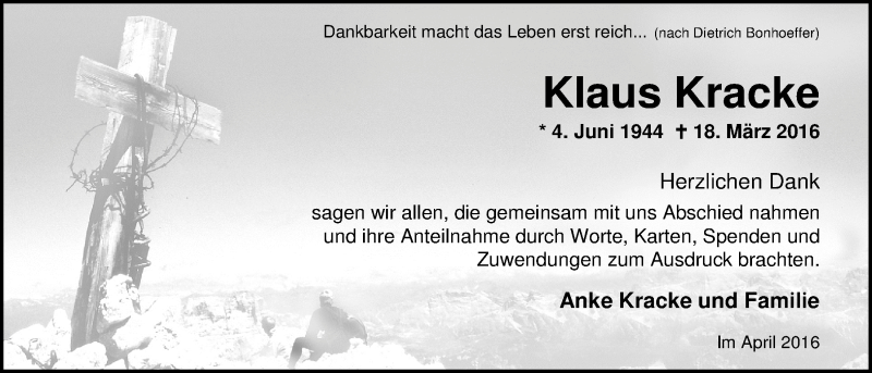 Hier finden Sie alle Traueranzeigen aus der Zeitung, die bisher für Klaus Kracke erschienen sind. Weitere Traueranzeigen, die in der Zeitung erscheinen, werden hier ebenfalls aufgelistet