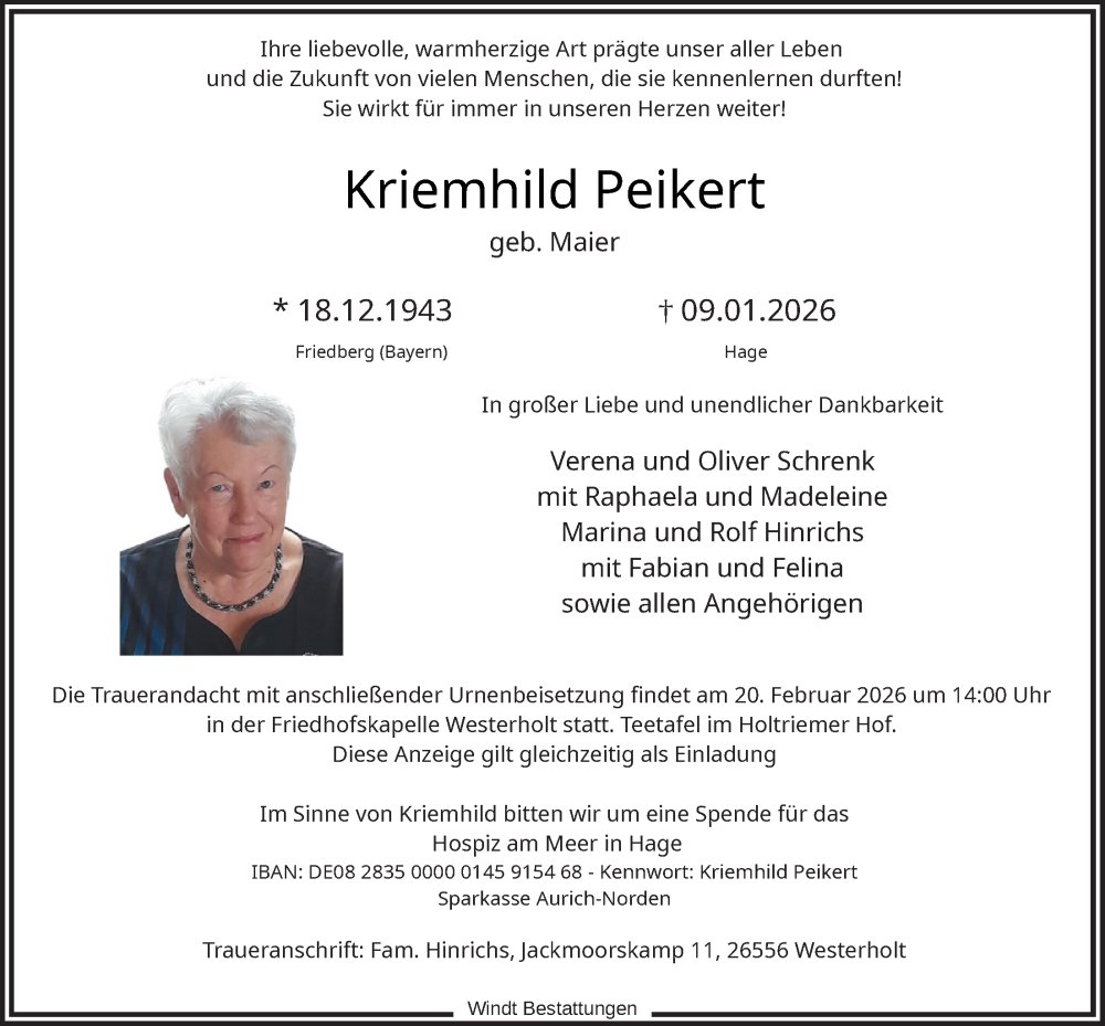 Hier finden Sie alle Traueranzeigen aus der Zeitung, die bisher für Kriemhild Peikert erschienen sind. Weitere Traueranzeigen, die in der Zeitung erscheinen, werden hier ebenfalls aufgelistet
