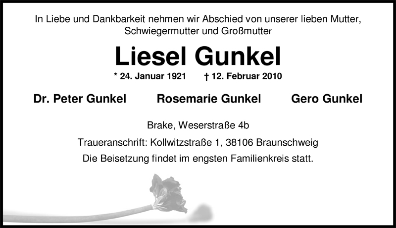Hier finden Sie alle Traueranzeigen aus der Zeitung, die bisher für Liesel Gunkel erschienen sind. Weitere Traueranzeigen, die in der Zeitung erscheinen, werden hier ebenfalls aufgelistet