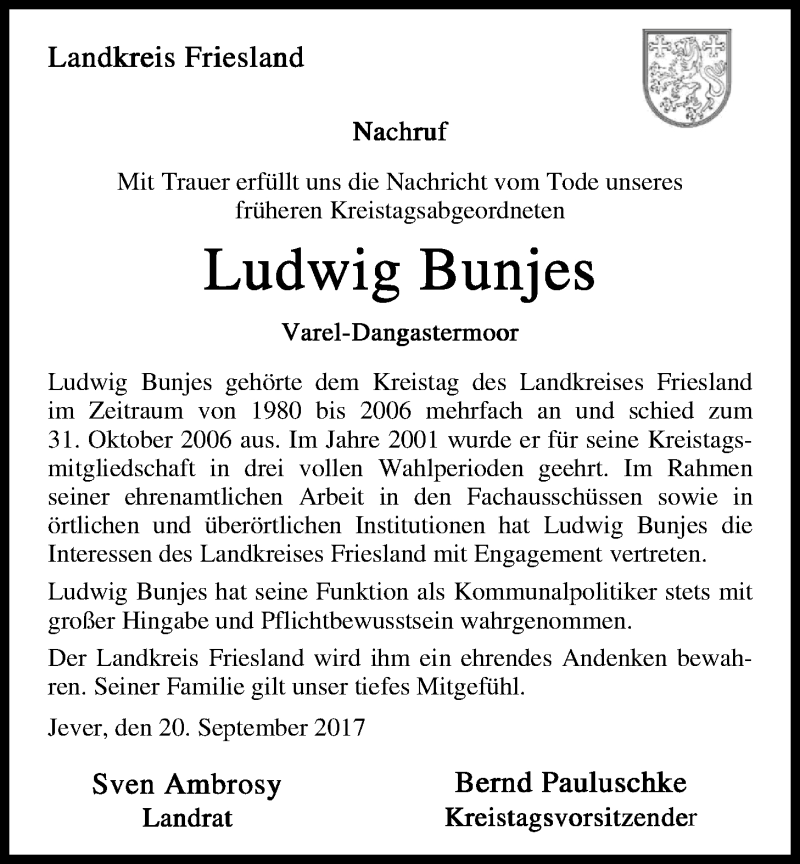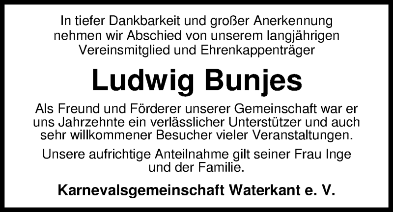 Hier finden Sie alle Traueranzeigen aus der Zeitung, die bisher für Ludwig Bunjes erschienen sind. Weitere Traueranzeigen, die in der Zeitung erscheinen, werden hier ebenfalls aufgelistet