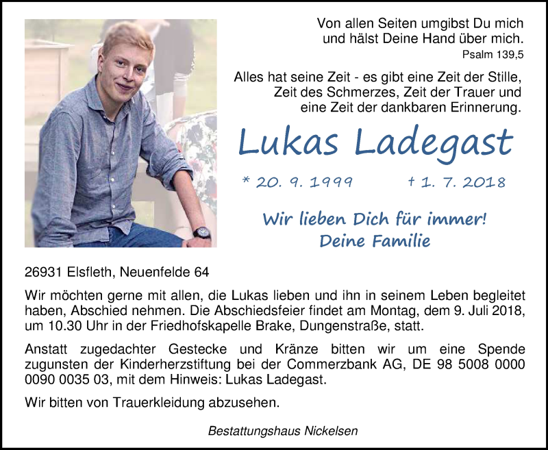 Hier finden Sie alle Traueranzeigen aus der Zeitung, die bisher für Lukas Ladegast erschienen sind. Weitere Traueranzeigen, die in der Zeitung erscheinen, werden hier ebenfalls aufgelistet