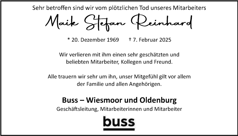 Hier finden Sie alle Traueranzeigen aus der Zeitung, die bisher für Maik Stefan Reinhard erschienen sind. Weitere Traueranzeigen, die in der Zeitung erscheinen, werden hier ebenfalls aufgelistet