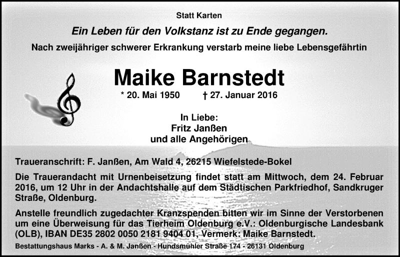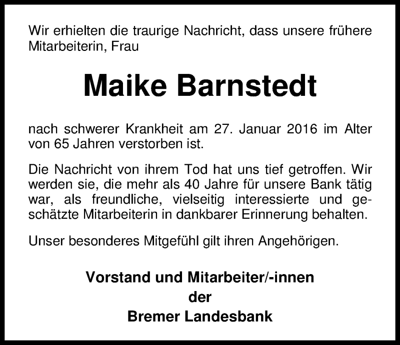 Hier finden Sie alle Traueranzeigen aus der Zeitung, die bisher für Maike Barnstedt erschienen sind. Weitere Traueranzeigen, die in der Zeitung erscheinen, werden hier ebenfalls aufgelistet
