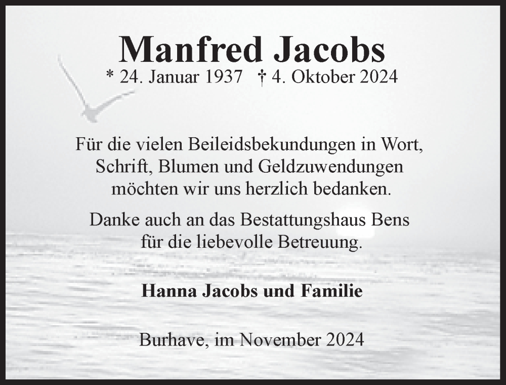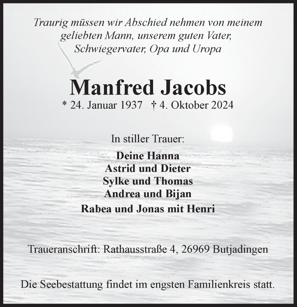 Hier finden Sie alle Traueranzeigen aus der Zeitung, die bisher für Manfred Jacobs erschienen sind. Weitere Traueranzeigen, die in der Zeitung erscheinen, werden hier ebenfalls aufgelistet