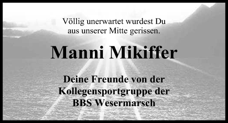 Hier finden Sie alle Traueranzeigen aus der Zeitung, die bisher für Manfred Mikiffer erschienen sind. Weitere Traueranzeigen, die in der Zeitung erscheinen, werden hier ebenfalls aufgelistet