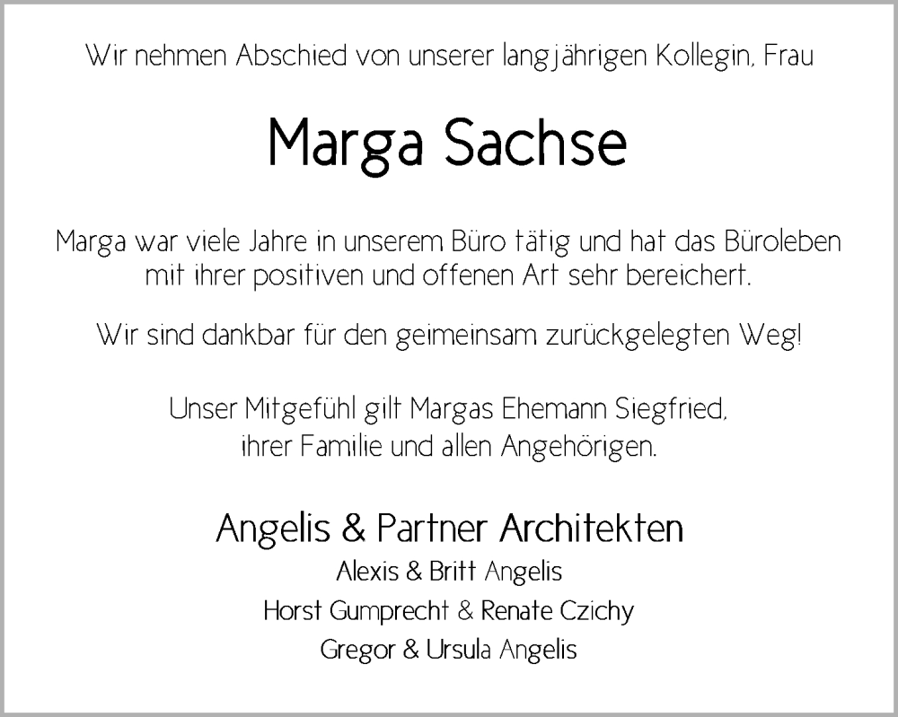 Hier finden Sie alle Traueranzeigen aus der Zeitung, die bisher für Marga Sachse erschienen sind. Weitere Traueranzeigen, die in der Zeitung erscheinen, werden hier ebenfalls aufgelistet