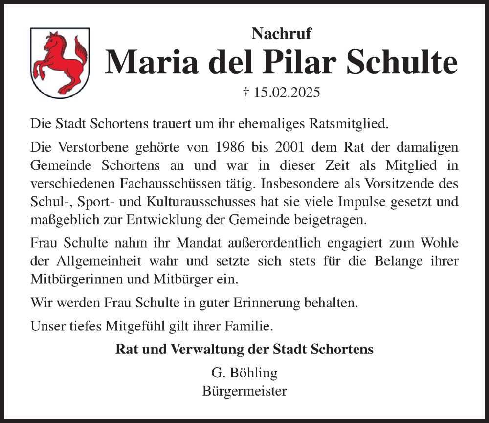 Hier finden Sie alle Traueranzeigen aus der Zeitung, die bisher für Maria del Pilar Schulte erschienen sind. Weitere Traueranzeigen, die in der Zeitung erscheinen, werden hier ebenfalls aufgelistet