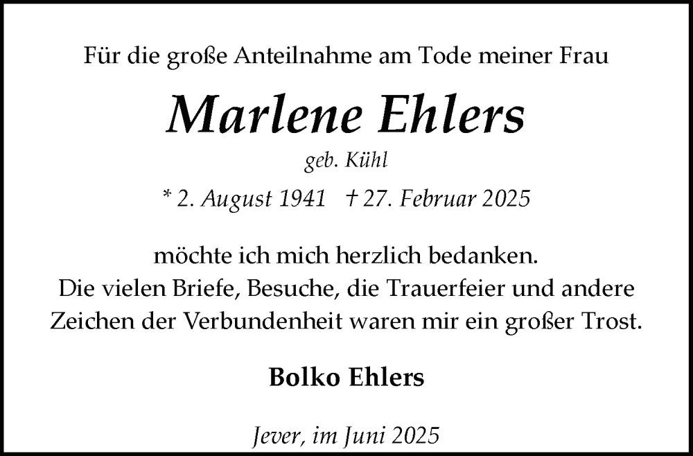 Hier finden Sie alle Traueranzeigen aus der Zeitung, die bisher für Marlene Ehlers erschienen sind. Weitere Traueranzeigen, die in der Zeitung erscheinen, werden hier ebenfalls aufgelistet
