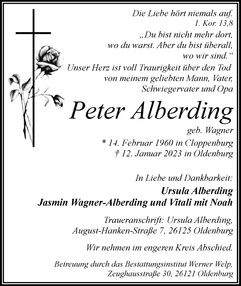 Hier finden Sie alle Traueranzeigen aus der Zeitung, die bisher für Peter Alberding erschienen sind. Weitere Traueranzeigen, die in der Zeitung erscheinen, werden hier ebenfalls aufgelistet
