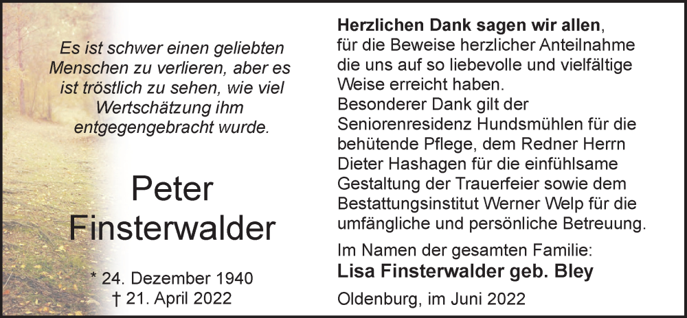 Hier finden Sie alle Traueranzeigen aus der Zeitung, die bisher für Peter Finsterwalder erschienen sind. Weitere Traueranzeigen, die in der Zeitung erscheinen, werden hier ebenfalls aufgelistet