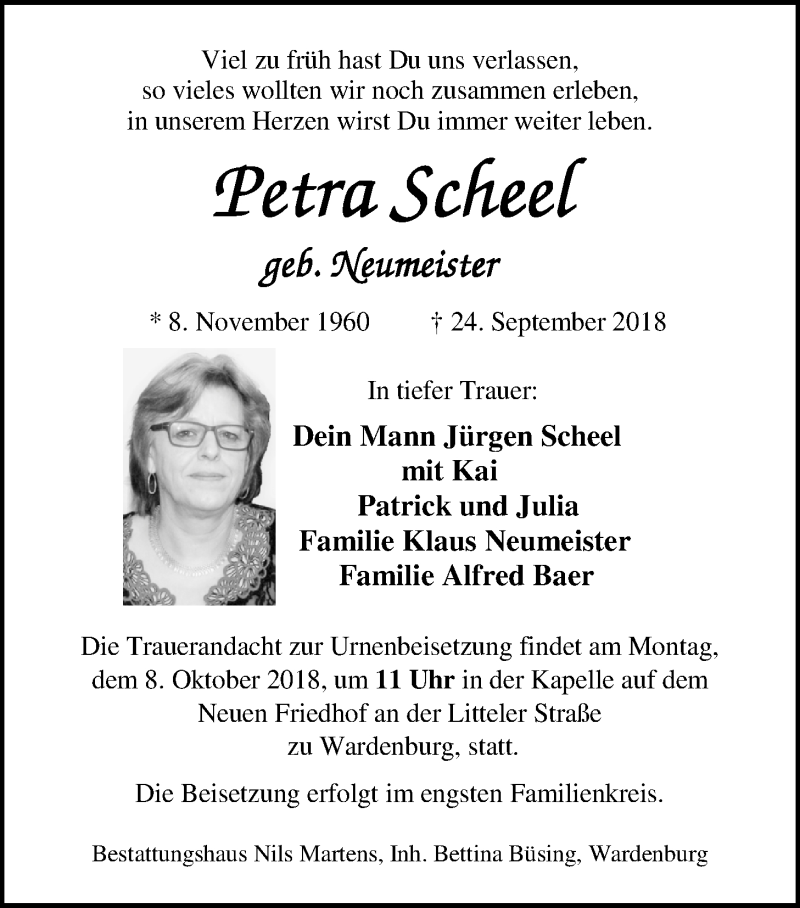 Hier finden Sie alle Traueranzeigen aus der Zeitung, die bisher für Petra Scheel erschienen sind. Weitere Traueranzeigen, die in der Zeitung erscheinen, werden hier ebenfalls aufgelistet