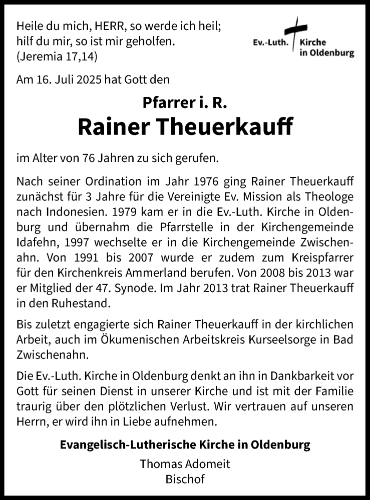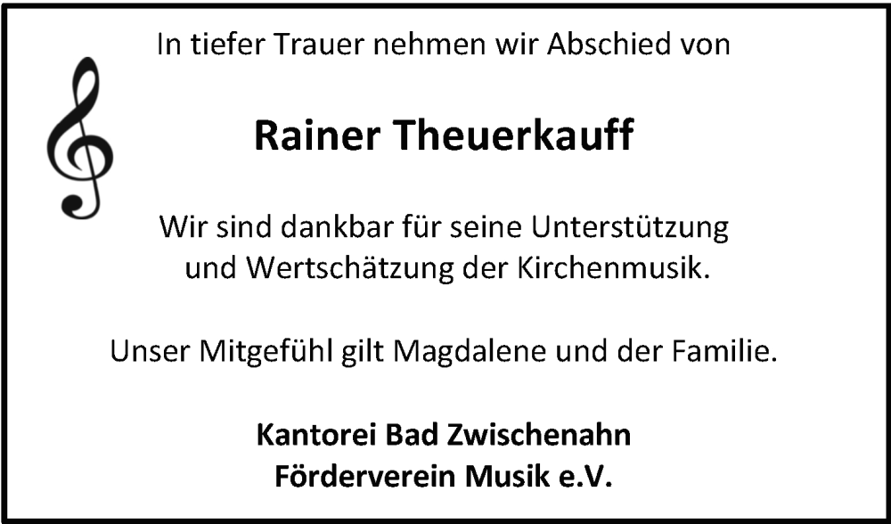 Hier finden Sie alle Traueranzeigen aus der Zeitung, die bisher für Rainer Theuerkauff erschienen sind. Weitere Traueranzeigen, die in der Zeitung erscheinen, werden hier ebenfalls aufgelistet