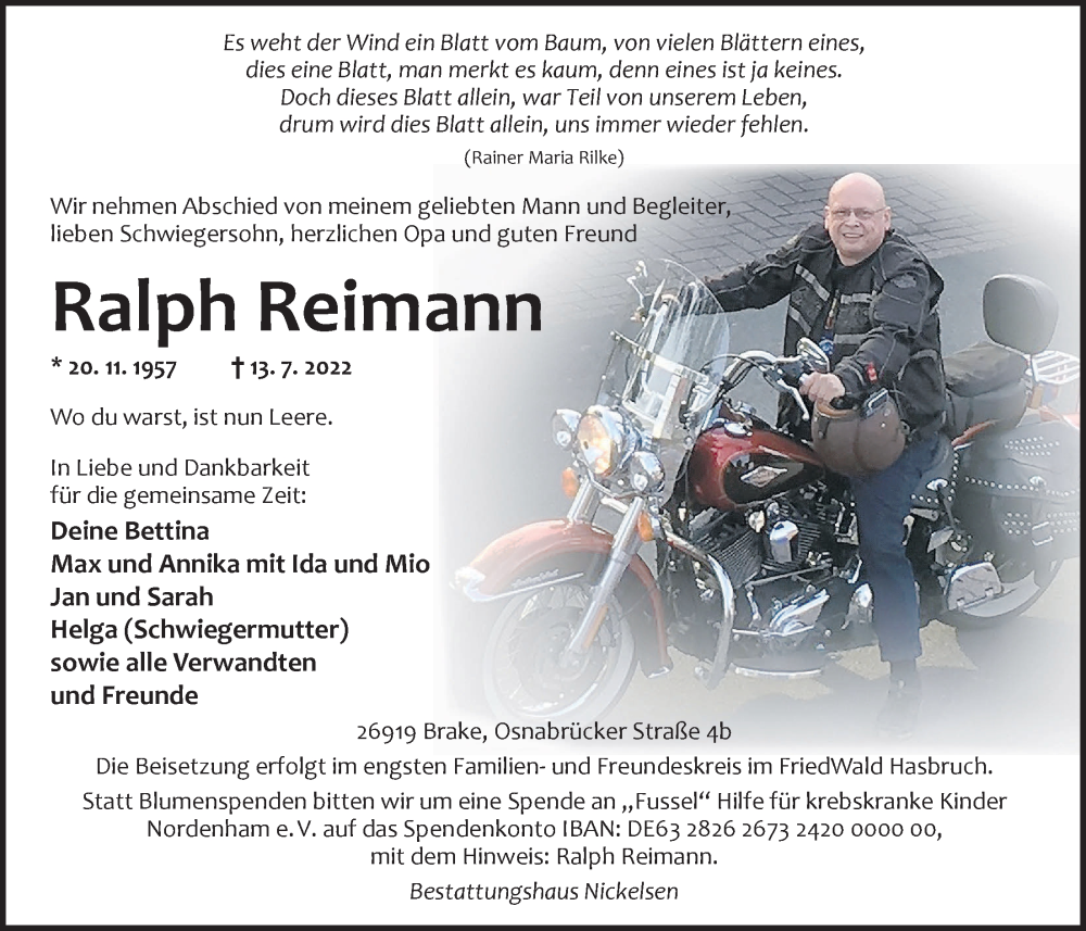 Hier finden Sie alle Traueranzeigen aus der Zeitung, die bisher für Ralph Reimann erschienen sind. Weitere Traueranzeigen, die in der Zeitung erscheinen, werden hier ebenfalls aufgelistet