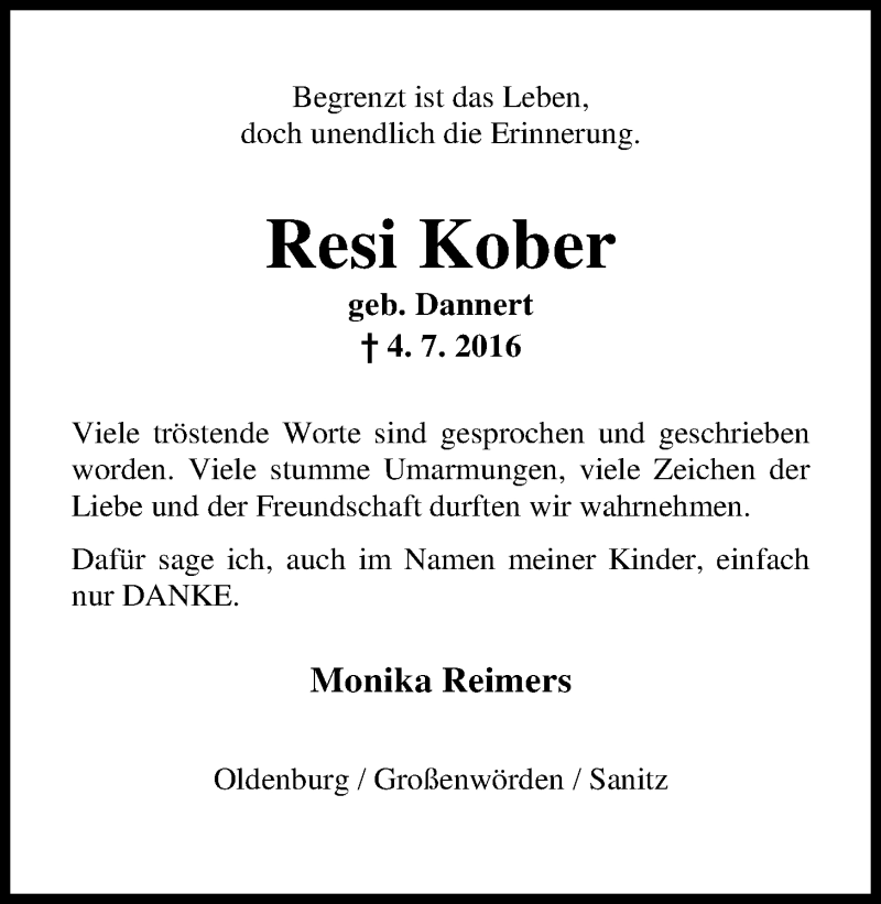Hier finden Sie alle Traueranzeigen aus der Zeitung, die bisher für Resi Kober erschienen sind. Weitere Traueranzeigen, die in der Zeitung erscheinen, werden hier ebenfalls aufgelistet