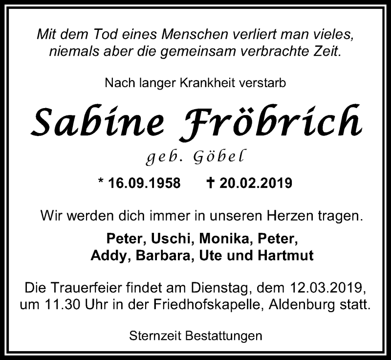 Hier finden Sie alle Traueranzeigen aus der Zeitung, die bisher für Sabine Fröbrich erschienen sind. Weitere Traueranzeigen, die in der Zeitung erscheinen, werden hier ebenfalls aufgelistet