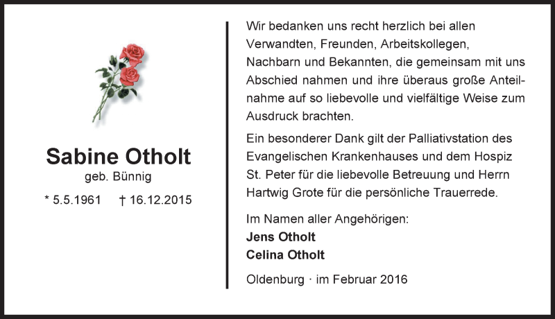 Hier finden Sie alle Traueranzeigen aus der Zeitung, die bisher für Sabine Otholt erschienen sind. Weitere Traueranzeigen, die in der Zeitung erscheinen, werden hier ebenfalls aufgelistet