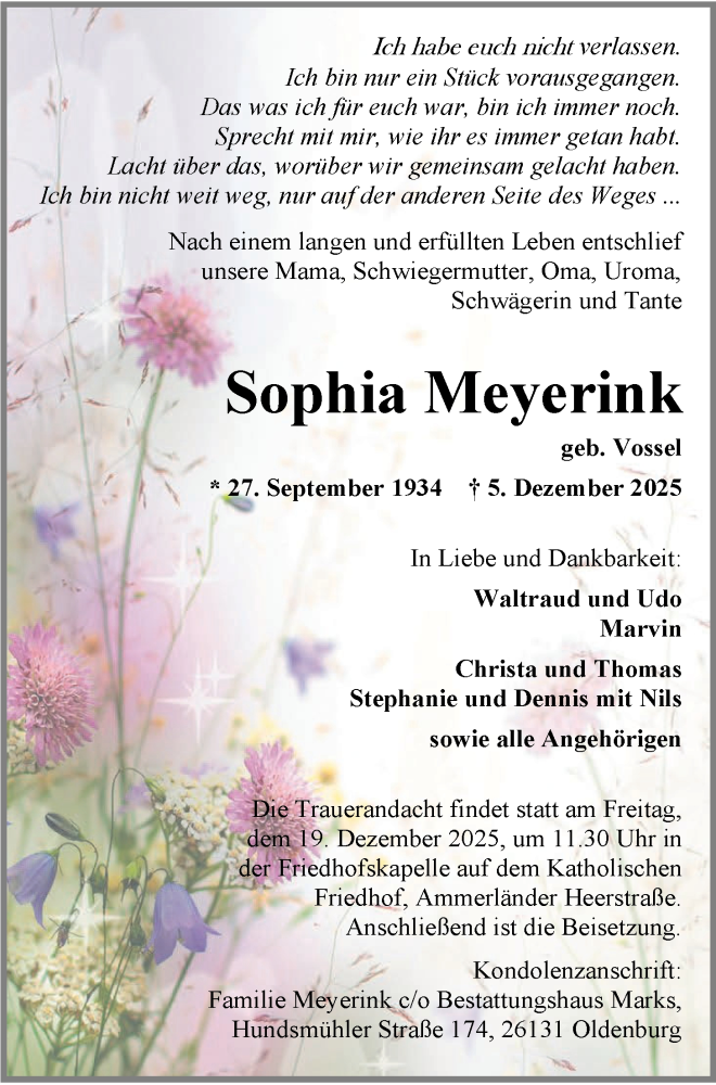 Hier finden Sie alle Traueranzeigen aus der Zeitung, die bisher für Sophia Meyerink erschienen sind. Weitere Traueranzeigen, die in der Zeitung erscheinen, werden hier ebenfalls aufgelistet