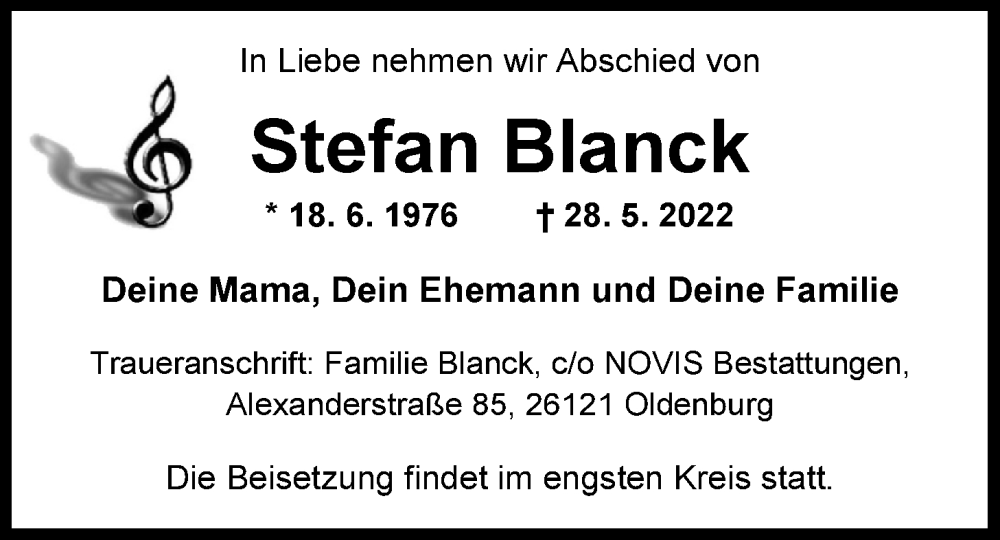 Hier finden Sie alle Traueranzeigen aus der Zeitung, die bisher für Stefan Blanck erschienen sind. Weitere Traueranzeigen, die in der Zeitung erscheinen, werden hier ebenfalls aufgelistet