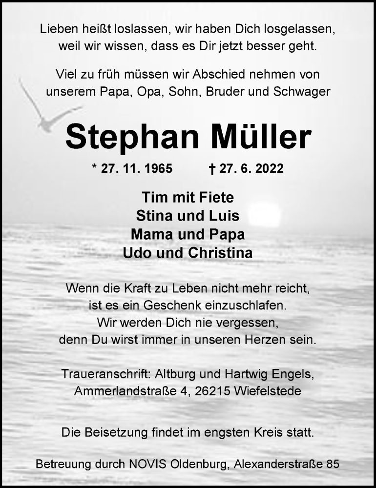 Hier finden Sie alle Traueranzeigen aus der Zeitung, die bisher für Stephan Müller erschienen sind. Weitere Traueranzeigen, die in der Zeitung erscheinen, werden hier ebenfalls aufgelistet