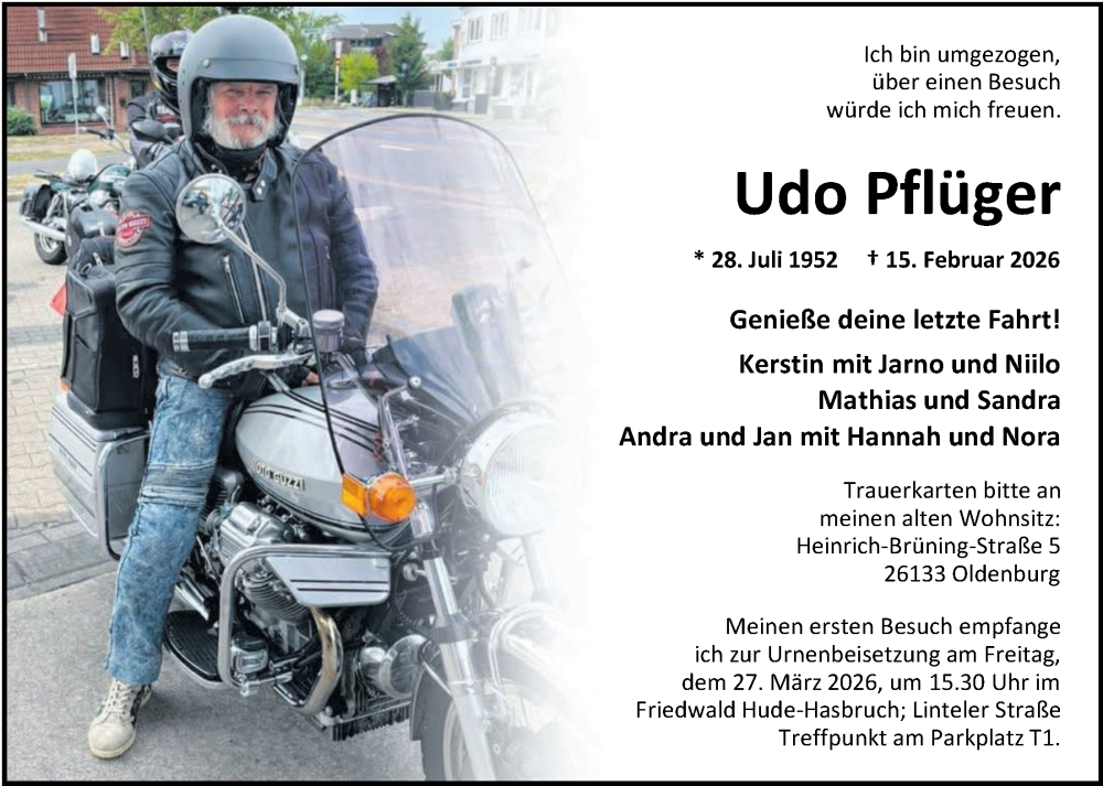 Hier finden Sie alle Traueranzeigen aus der Zeitung, die bisher für Udo Pflüger erschienen sind. Weitere Traueranzeigen, die in der Zeitung erscheinen, werden hier ebenfalls aufgelistet
