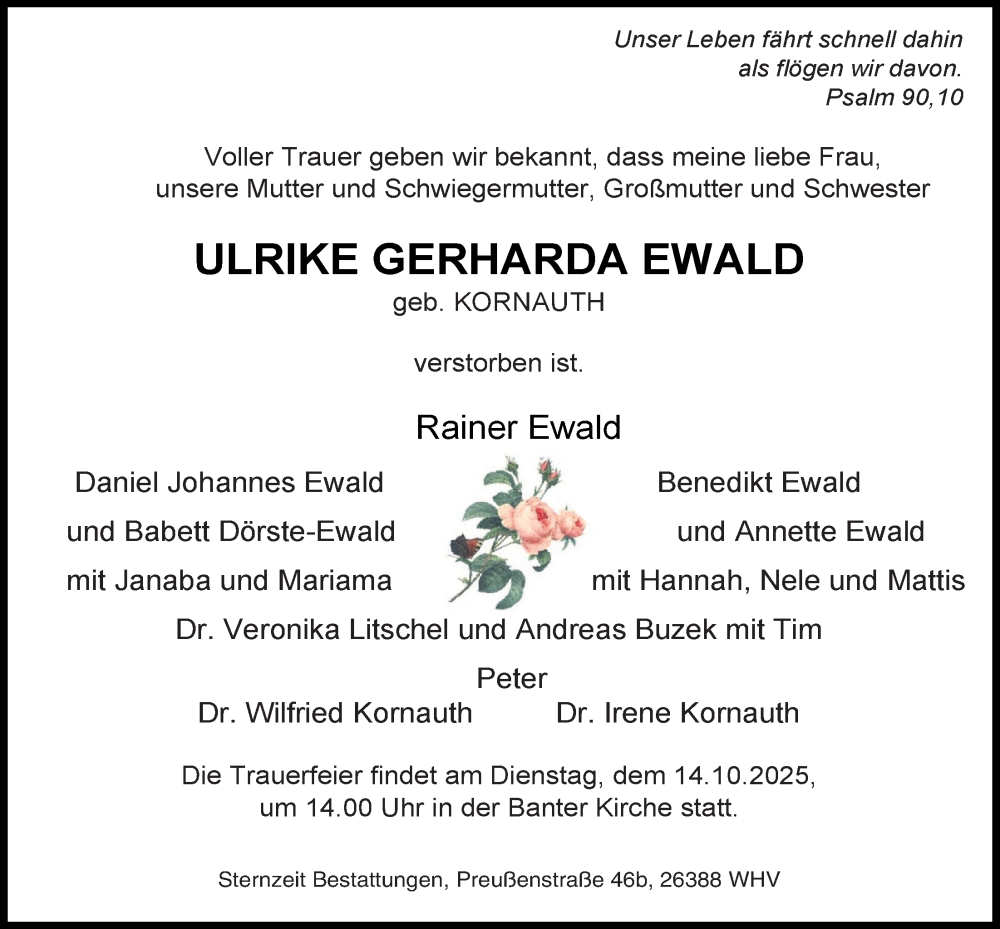 Hier finden Sie alle Traueranzeigen aus der Zeitung, die bisher für Ulrike Gerharda Ewald erschienen sind. Weitere Traueranzeigen, die in der Zeitung erscheinen, werden hier ebenfalls aufgelistet