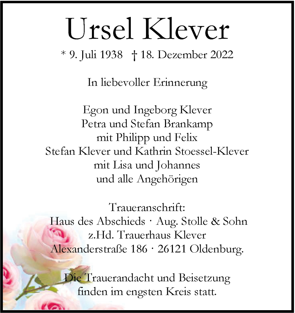 Hier finden Sie alle Traueranzeigen aus der Zeitung, die bisher für Ursel Klever erschienen sind. Weitere Traueranzeigen, die in der Zeitung erscheinen, werden hier ebenfalls aufgelistet