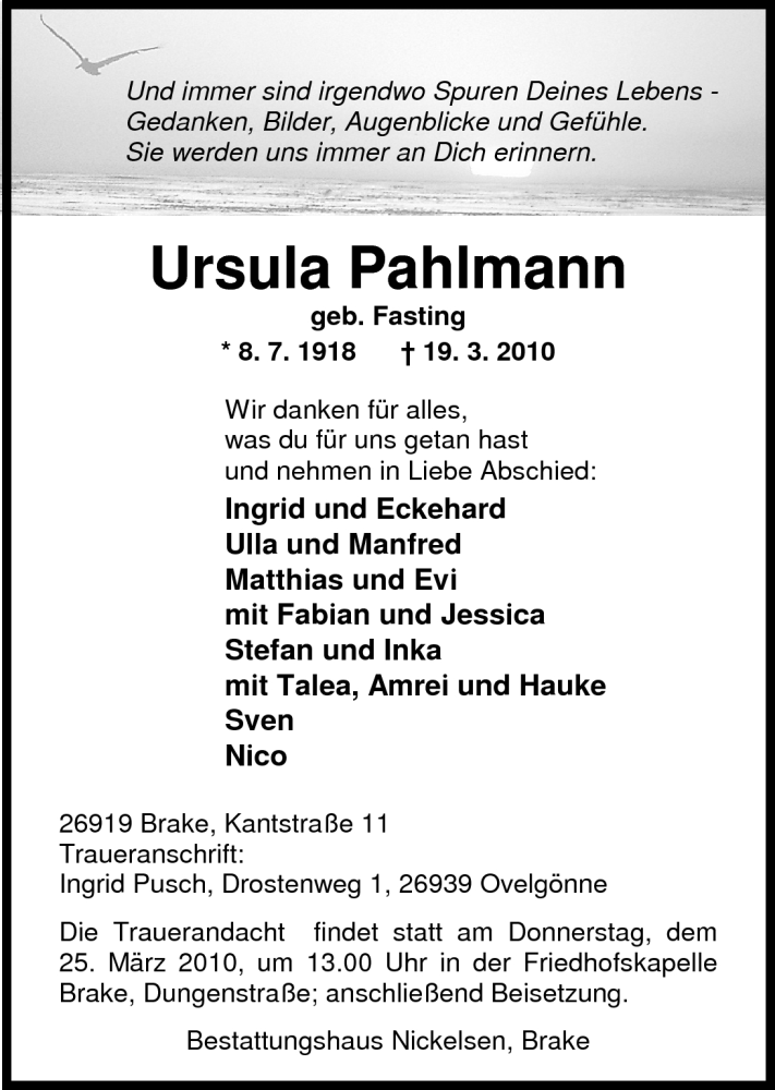 Hier finden Sie alle Traueranzeigen aus der Zeitung, die bisher für Ursula Pahlmann erschienen sind. Weitere Traueranzeigen, die in der Zeitung erscheinen, werden hier ebenfalls aufgelistet