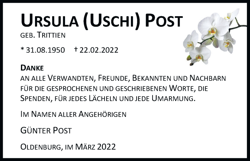 Hier finden Sie alle Traueranzeigen aus der Zeitung, die bisher für Ursula Post erschienen sind. Weitere Traueranzeigen, die in der Zeitung erscheinen, werden hier ebenfalls aufgelistet