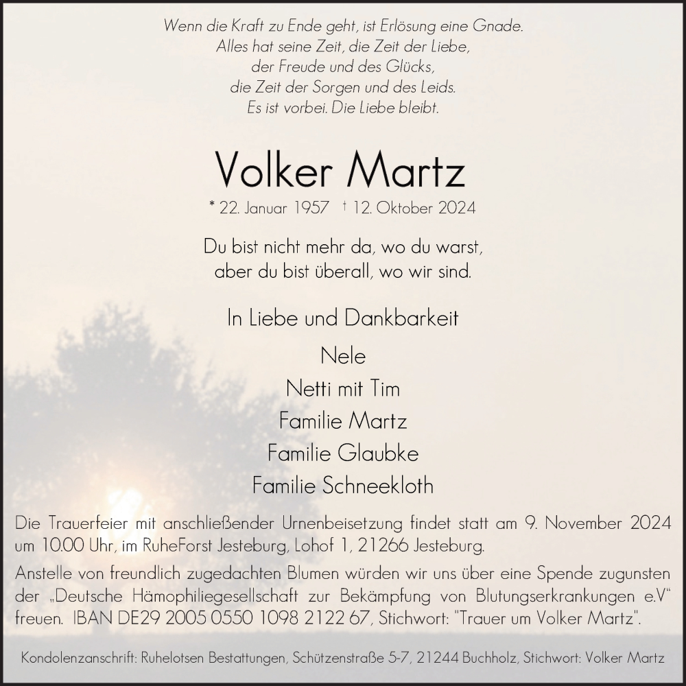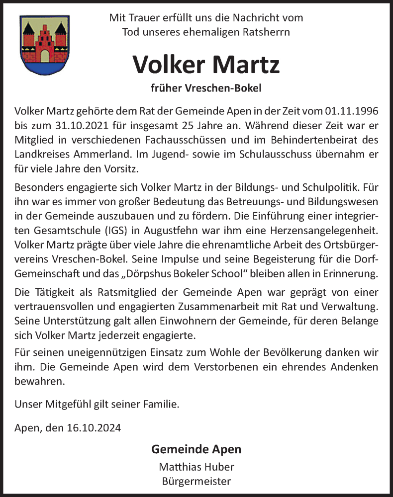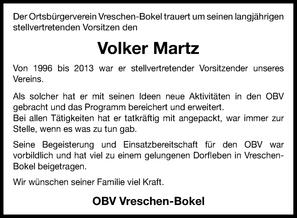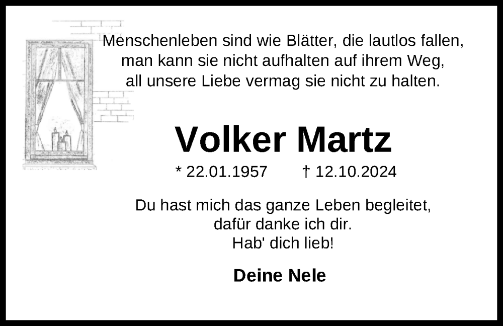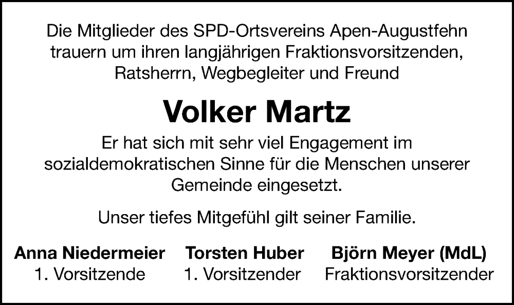 Hier finden Sie alle Traueranzeigen aus der Zeitung, die bisher für Volker Martz erschienen sind. Weitere Traueranzeigen, die in der Zeitung erscheinen, werden hier ebenfalls aufgelistet