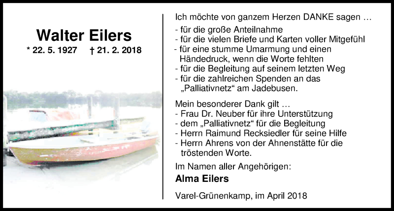 Hier finden Sie alle Traueranzeigen aus der Zeitung, die bisher für Walter Eilers erschienen sind. Weitere Traueranzeigen, die in der Zeitung erscheinen, werden hier ebenfalls aufgelistet