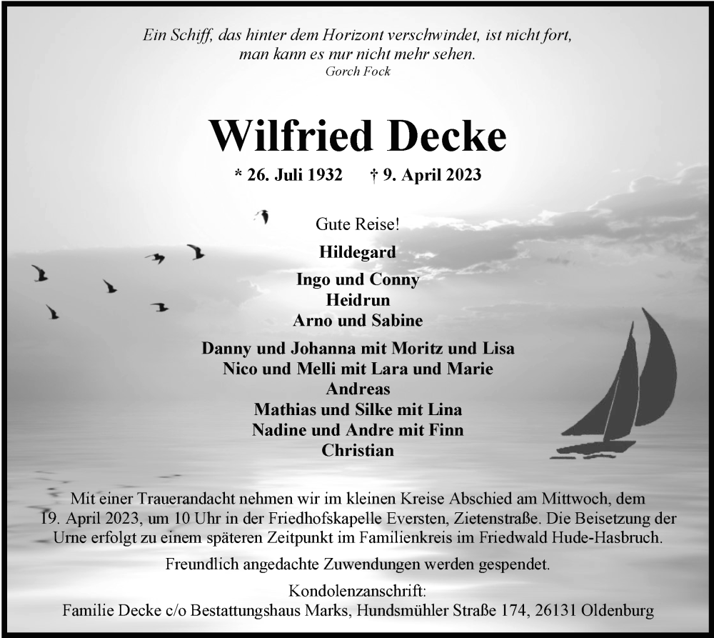 Hier finden Sie alle Traueranzeigen aus der Zeitung, die bisher für Wilfried Decke erschienen sind. Weitere Traueranzeigen, die in der Zeitung erscheinen, werden hier ebenfalls aufgelistet
