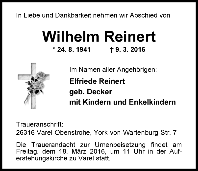 Hier finden Sie alle Traueranzeigen aus der Zeitung, die bisher für Wilhelm Reinert erschienen sind. Weitere Traueranzeigen, die in der Zeitung erscheinen, werden hier ebenfalls aufgelistet