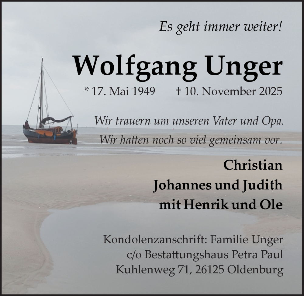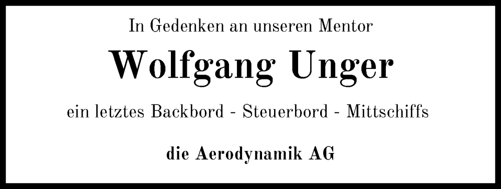 Hier finden Sie alle Traueranzeigen aus der Zeitung, die bisher für Wolfgang Unger erschienen sind. Weitere Traueranzeigen, die in der Zeitung erscheinen, werden hier ebenfalls aufgelistet