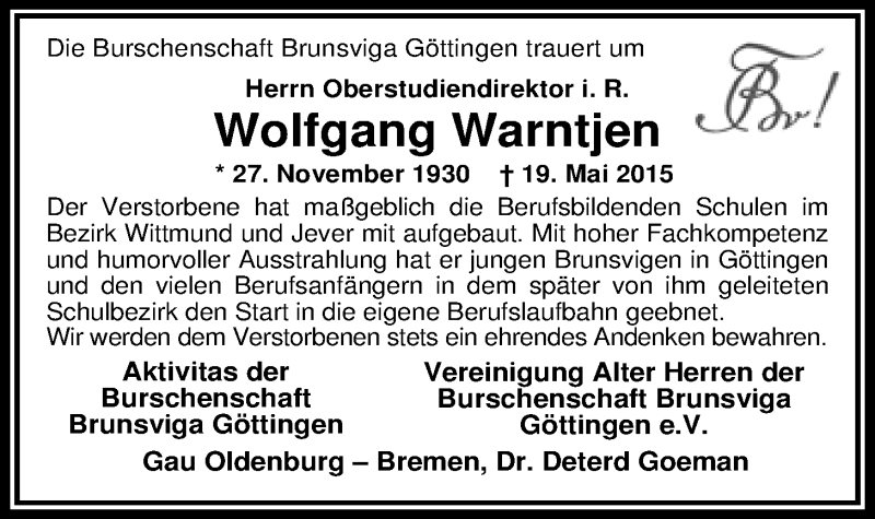 Hier finden Sie alle Traueranzeigen aus der Zeitung, die bisher für Wolfgang Warntjen erschienen sind. Weitere Traueranzeigen, die in der Zeitung erscheinen, werden hier ebenfalls aufgelistet